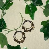 PENDIENTES DOBLE ARO PIEDRECITAS MARRONES Y CUENTAS METAL